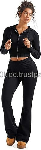 กางเกงขาบานแบบมีซิปชุดถัก2ชิ้นสำหรับผู้หญิง