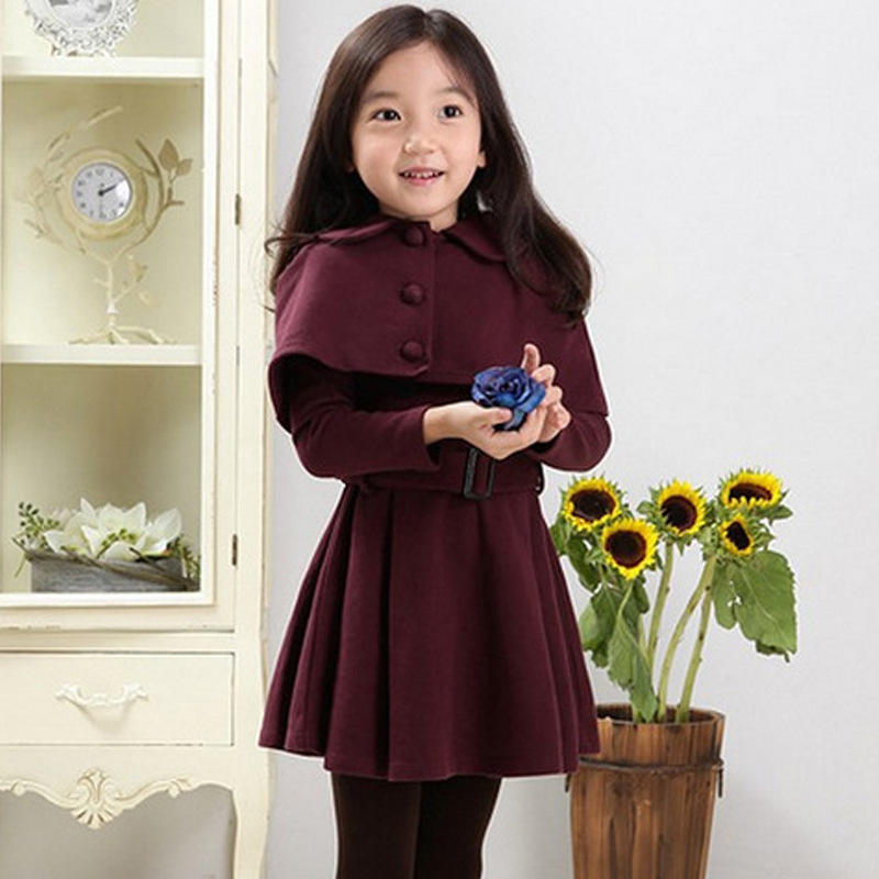 ชุดเสื้อผ้าเด็กผู้หญิง 2 ชิ้น สีพื้น สำหรับวันขอบคุณพระเจ้า ชุดเสื้อโค้ทและเดรส