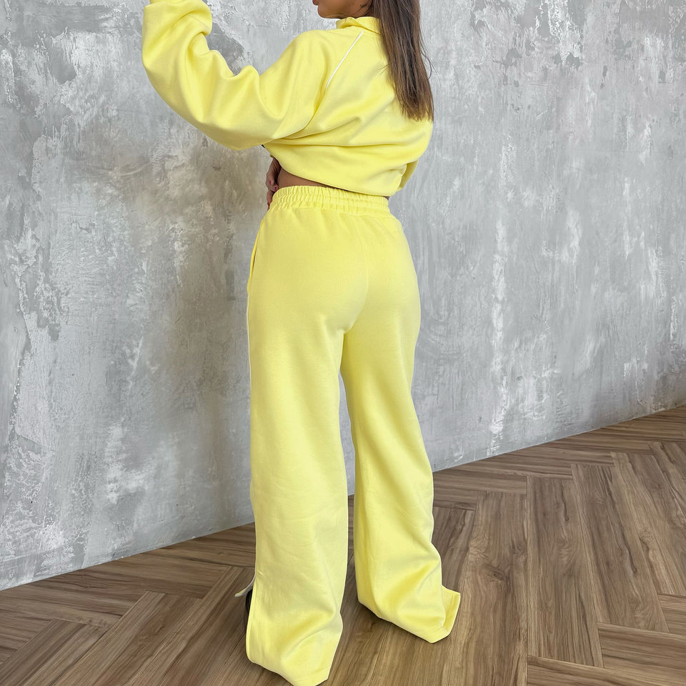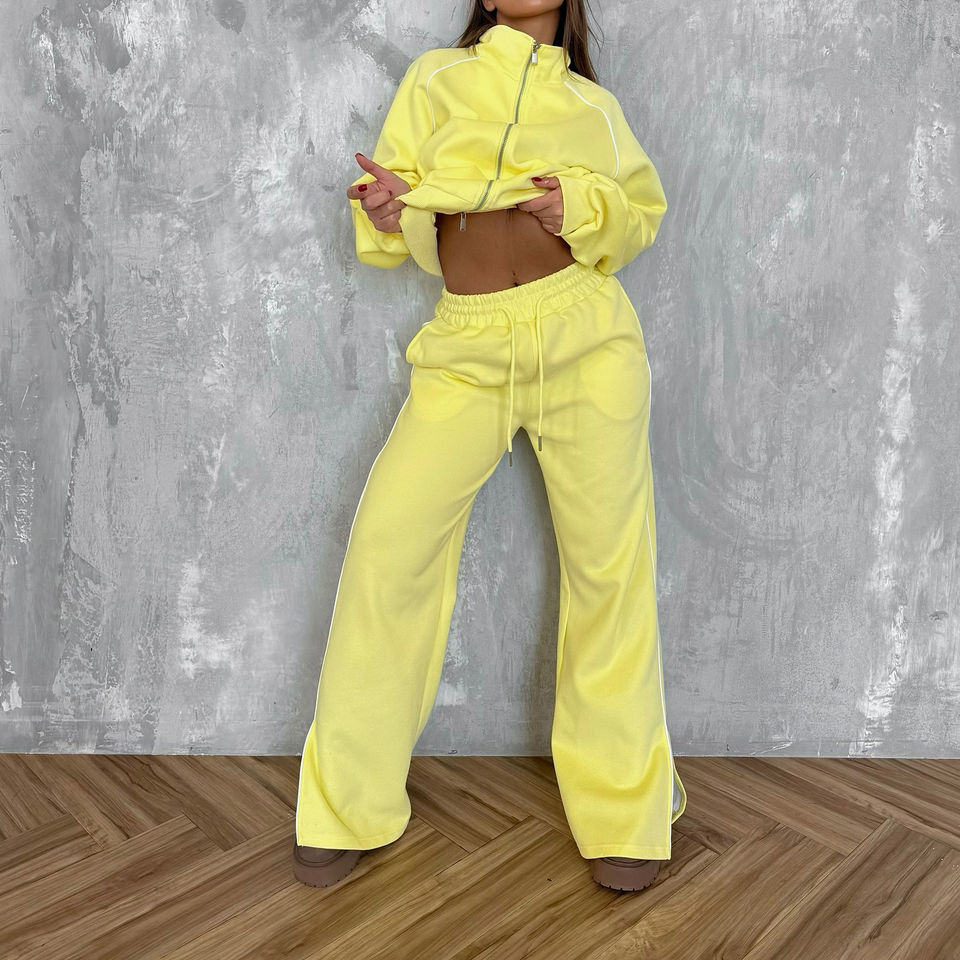 ชุดวอร์ม2ชิ้นสำหรับผู้หญิงเสื้อวอร์มแขนยาวแบบมีซิปเสื้อครอปท็อปกางเกงทรงหลวมกางเกงวิ่งจ็อกเกอร์คอตั้ง