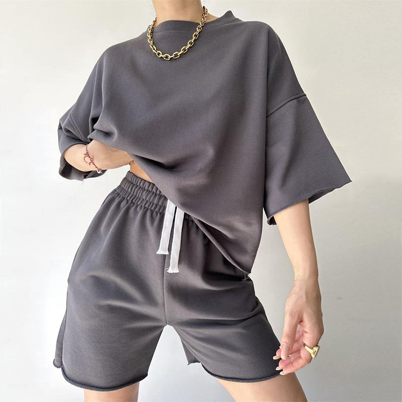 ชุดเซ็ต2ชิ้นสำหรับผู้หญิงชุดกางเกงขาสั้นลำลองและเสื้อยืดแฟชั่นแขนสั้นและกางเกงขาสั้นแบบทันสมัยสำหรับฤดูร้อน