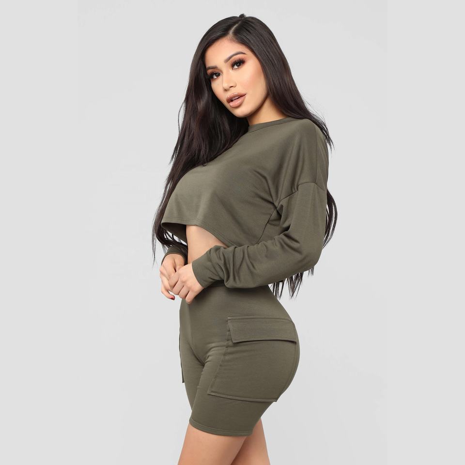 Women's Casual Spring Twin Suit Long Sleeve Sweatshirt Shorts Solid Pattern for Lounge Wear for Work 2-Piece Set above Knee Leng