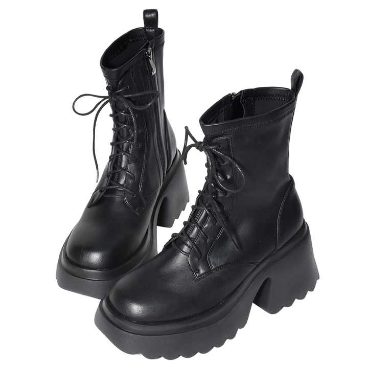 รองเท้าบูทส้นตึกสูง 8.5 ซม. สำหรับผู้หญิง ทนทาน กันลื่น สไตล์คอมแบท
