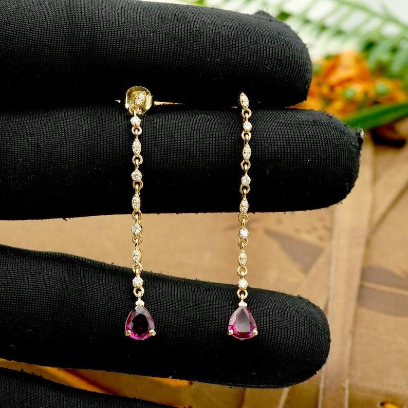 ต่างหูเงินแท้ 925 ชุบทอง 14k ประดับพลอยทับทิมและเพทายทรงยาว สำหรับผู้หญิง เครื่องประดับพลอยประจำเดือนเกิดเดือนกรกฎาคม
