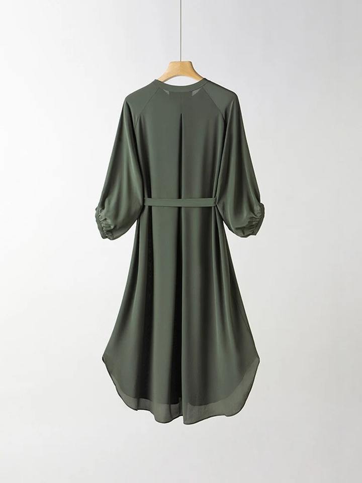 ชุดอาบายะห์ผู้หญิง ดีไซน์ใหม่ สวยหรู ผ้าไหมแท้ 100% แขนทรงโคม พร้อมเข็มขัด ยาวคลุมเท้า คอลเลคชั่นฤดูใบไม้ผลิ/ฤดูร้อน ปี 2026