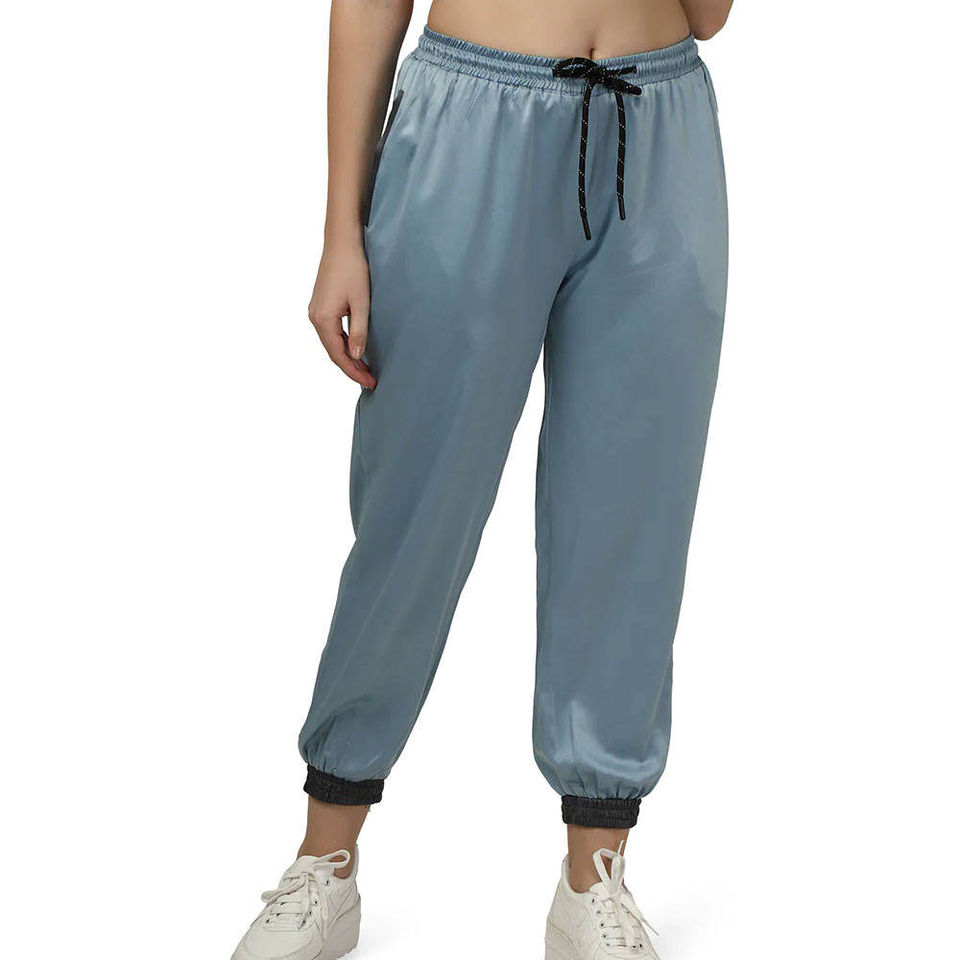 กางเกงจ็อกเกอร์ลำลองสำหรับผู้หญิง ผ้าฝ้ายฟอกสีแบบกลางๆ ขอบเอวยางยืด มีเชือกผูก เอวสม็อค ขายาว เหมาะสำหรับออกกำลังกายหรือใส่พักผ่อนในฤดูหนาว