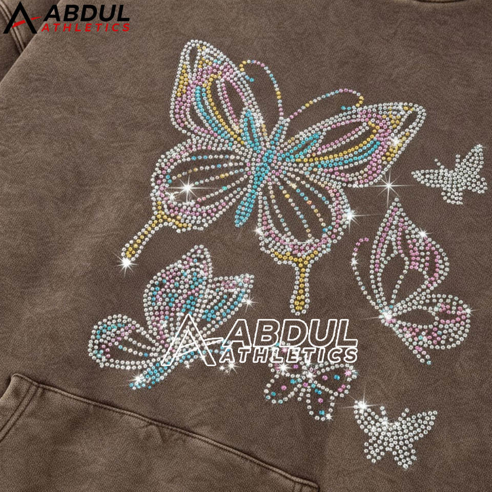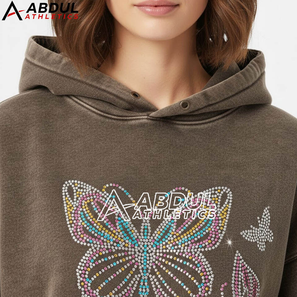 เสื้อฮู้ดผู้หญิงลายฟอกสีประดับเพชรเทียม สไตล์เทรนดี้ลุคฟอกสี แฟชั่นสตรีท เสื้อฮู้ดลายฟอกสีประดับเพชรเทียม