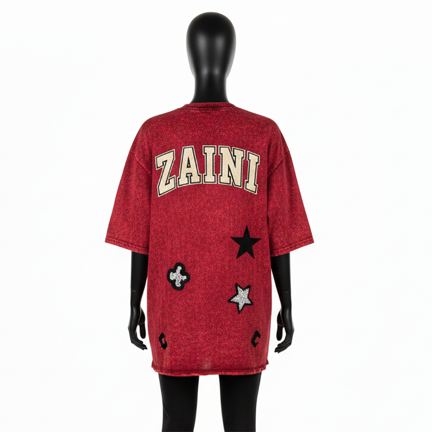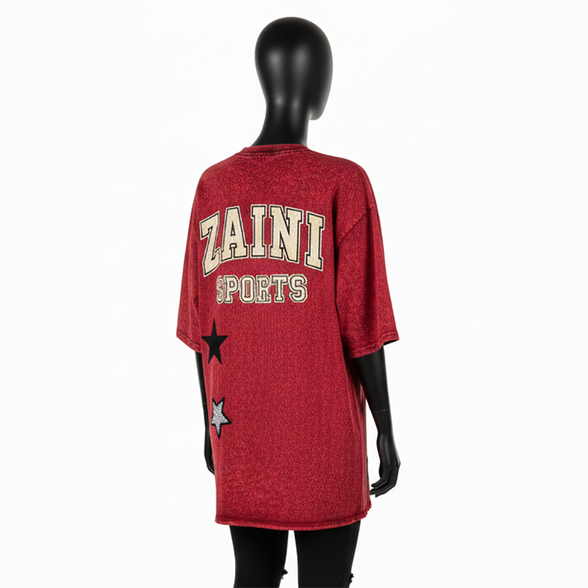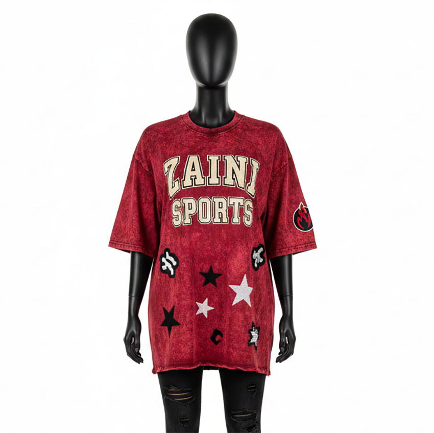เสื้อยืดผู้หญิงแบบฟอกสี พรีเมียม GSM ผ้าคอตตอนเจอร์ซีย์ เนื้อผ้านุ่ม สีแดงวินเทจ พิมพ์ลายโลโก้ตามสั่ง เสื้อยืดผู้หญิงแบบฟอกสี ผ้าคอตตอน
