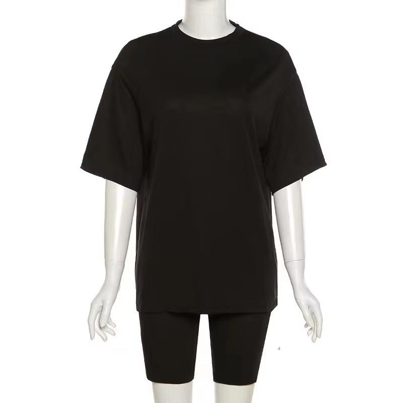 ชุดออกกำลังกาย2ชิ้นสำหรับผู้หญิงชุดเล่นโยคะฟิตเนสเสื้อโอเวอร์ไซส์สำหรับใส่วิ่งกางเกงขาสั้นสำหรับนักปั่นจักรยาน