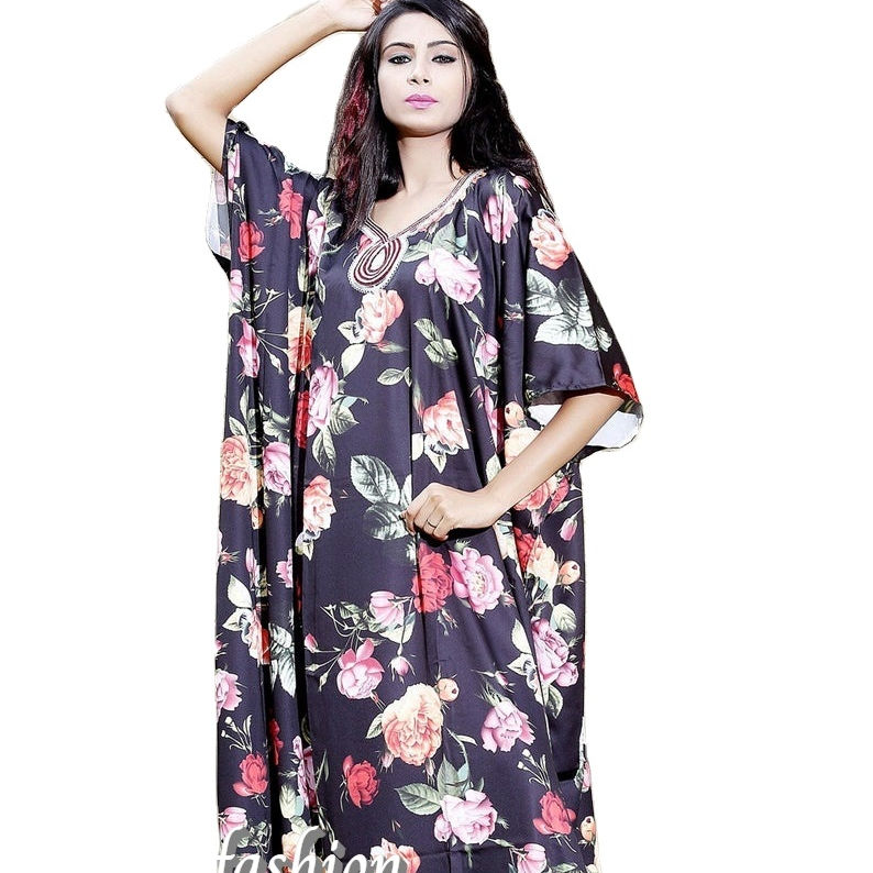 คาฟตานผ้าไหมแขนสั้นสำหรับผู้หญิง,ชุดทางการพิมพ์ลายดอกไม้สีล้วนสไตล์แอฟริกันแบบลำลองไซส์ใหญ่พิเศษ