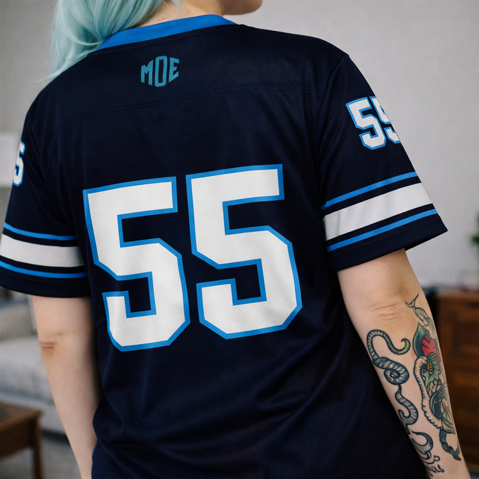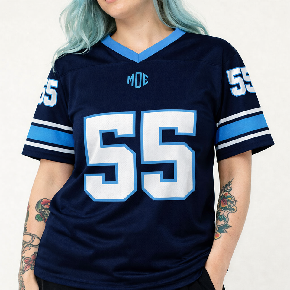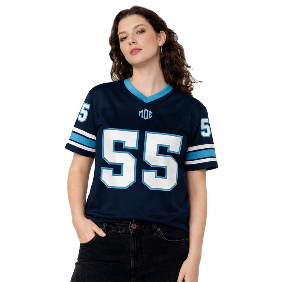 เสื้อเจอร์ซีย์อเมริกันฟุตบอลหญิง สีกรมท่า ผ้าตาข่าย คอวี ระบายอากาศได้ดี โพลีเอสเตอร์ เสื้อฟุตบอล เสื้อยืด สกรีนหมายเลขได้ตามสั่ง ผลิตตามแบบ OEM ขายส่ง สหรัฐอเมริกา