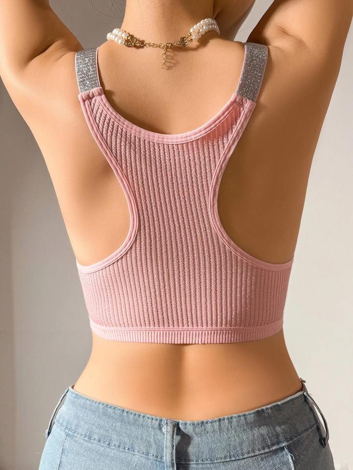 เสื้อแขนกุดโชว์หลังของผู้หญิงเสื้อเอวลอยมีสายรัดที่มองไม่เห็นเสื้อลำลองแขนกุดสีทึบสำหรับฤดูร้อนเสื้อผ้า Y2K