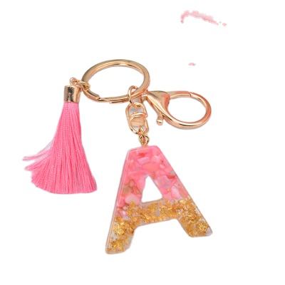 Women's Resin Epoxy Plastic Keychain Car Accessory Bag with Tassel Pendant Alphabet Acrylic English Letters Keychain