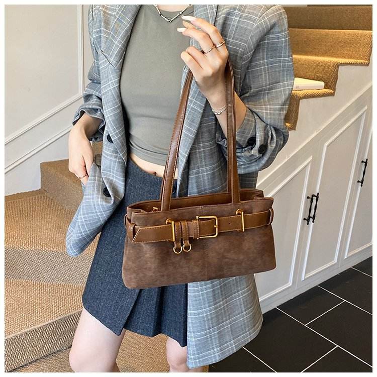 กระเป๋าผู้หญิงกระเป๋าสะพายไหล่สวยเรียบหรูกระเป๋าถือผู้หญิงหนังกลับวินเทจ