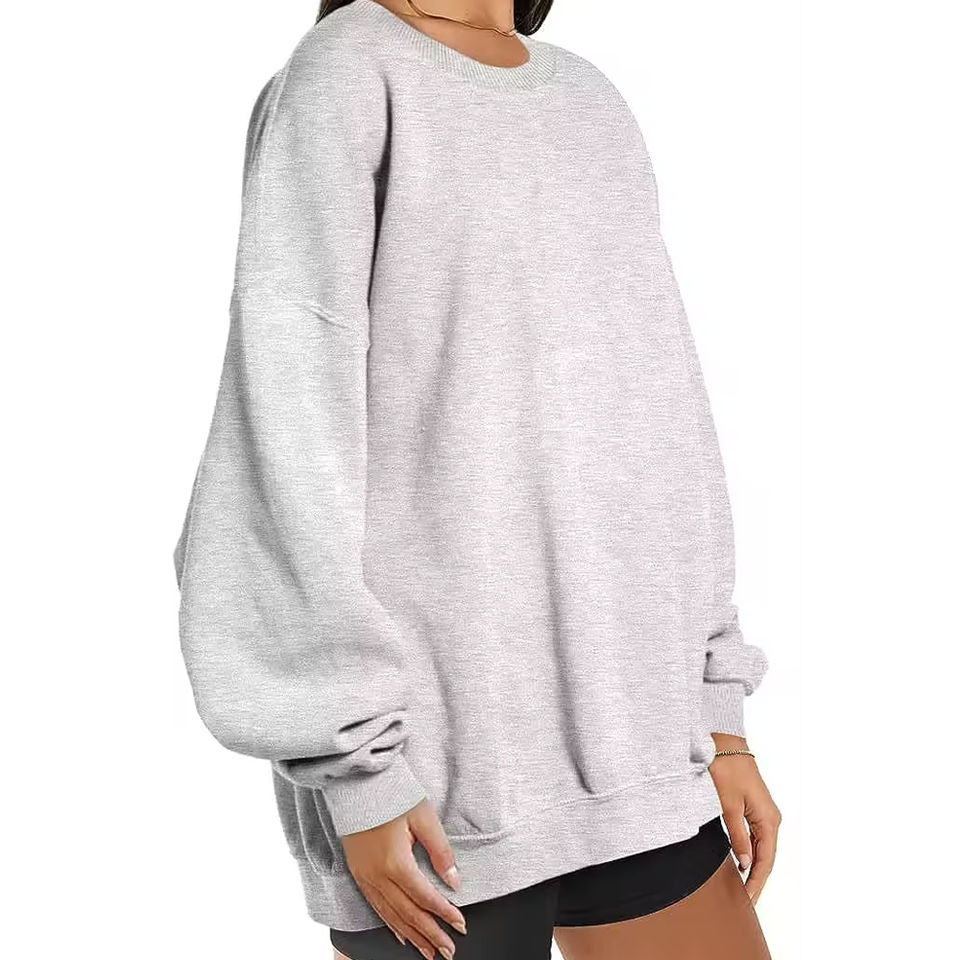 เสื้อสเวตเชิ้ตผ้าฟลีซพื้นฐานสำหรับผู้หญิง ผ้าฝ้าย 100% คอกลม แขนยาว ทรงหลวม สไตล์ลำลอง ทันสมัย เหมาะสำหรับฤดูหนาว เป็นมิตรกับสิ่งแวดล้อม ด้านหน้า