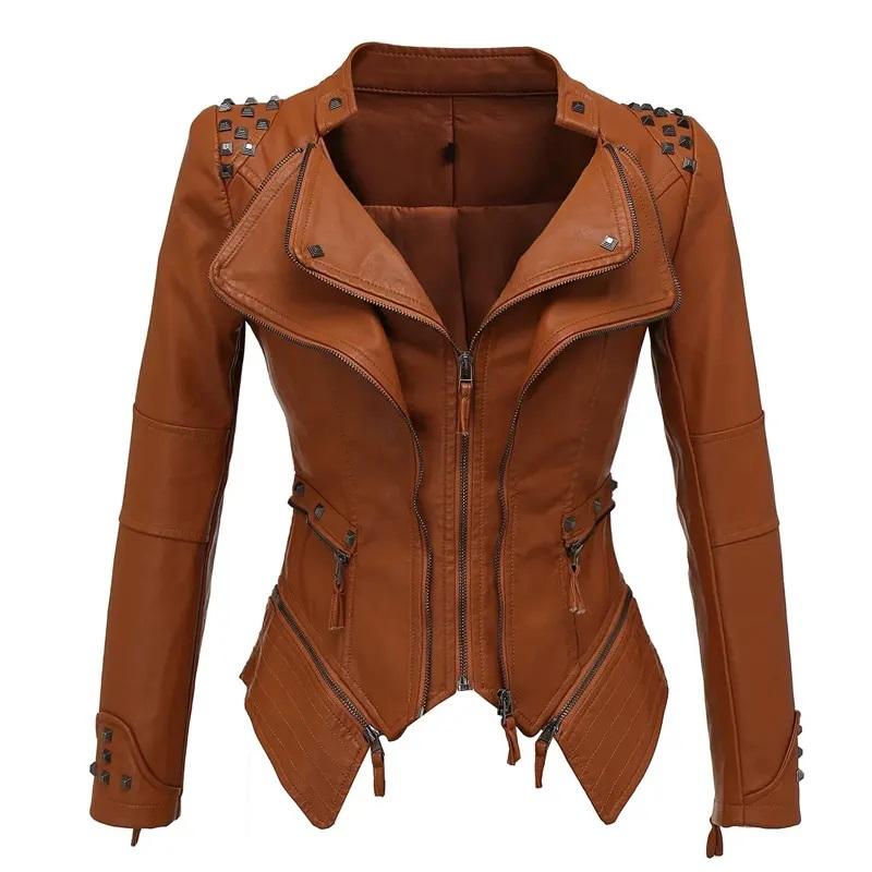 Women Biker jacket Yellow color sheepskin long sleeve fashion cowhide leather women biker genuine leather jacket