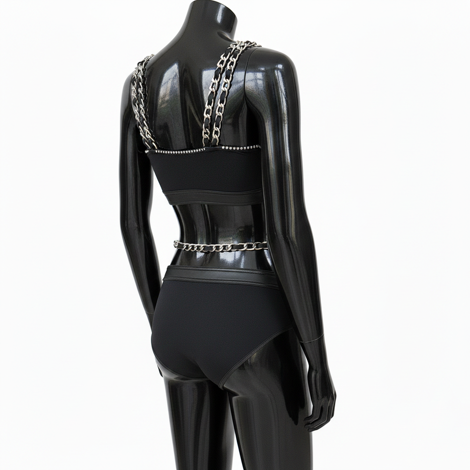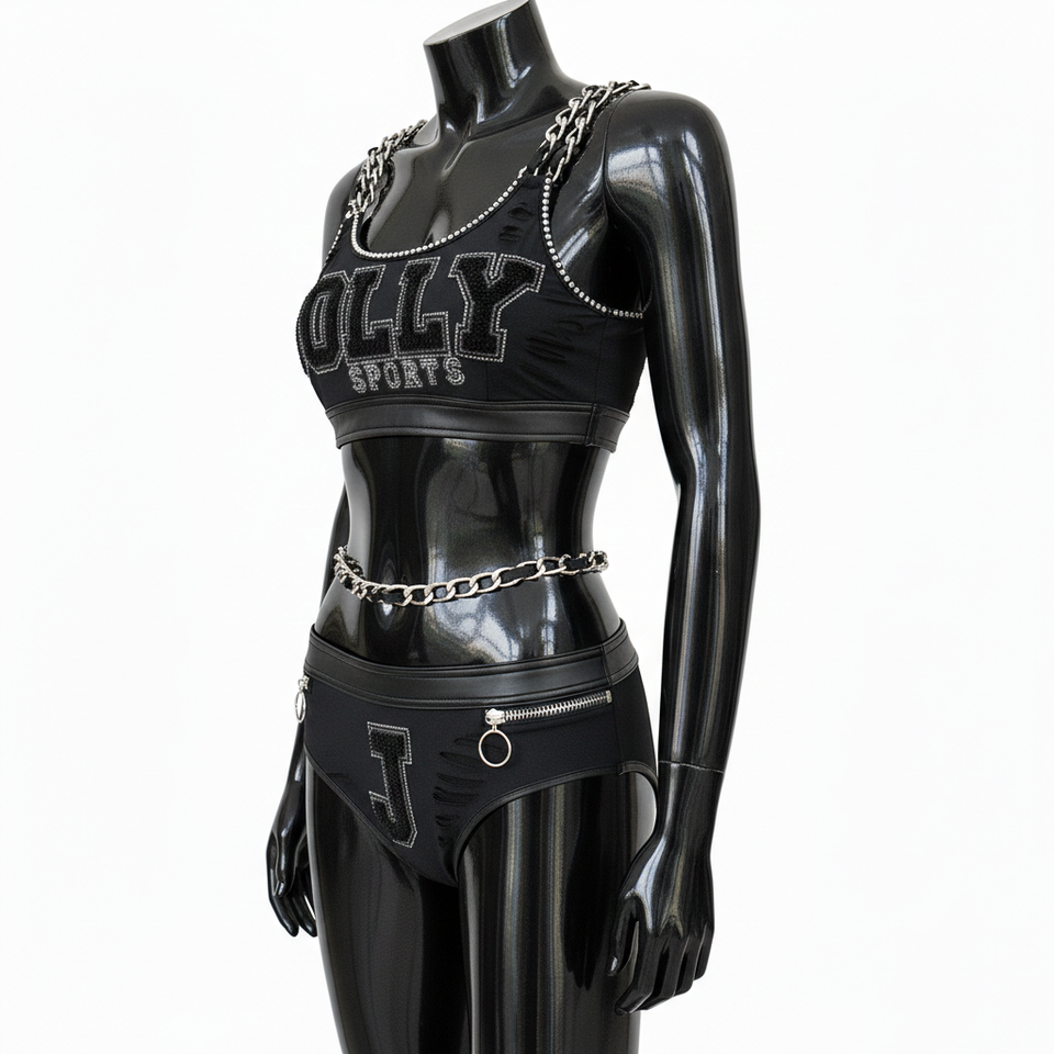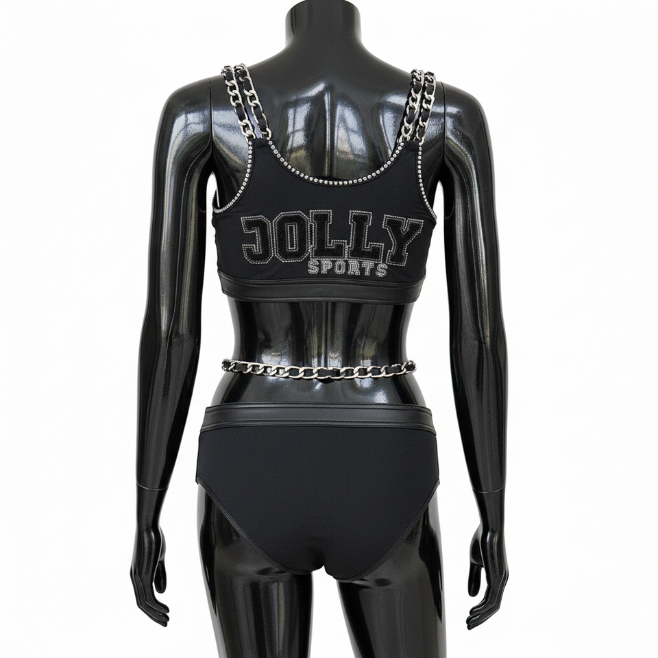 ชุดบิกินี่ผู้หญิง 180 GSM โพลีเอสเตอร์ สแปนเด็กซ์ ยืดได้ สีดำ ประดับเพชรเทียม ปักลายเชนีล ปักโลโก้ตามสั่ง บิกินี่ผู้หญิง