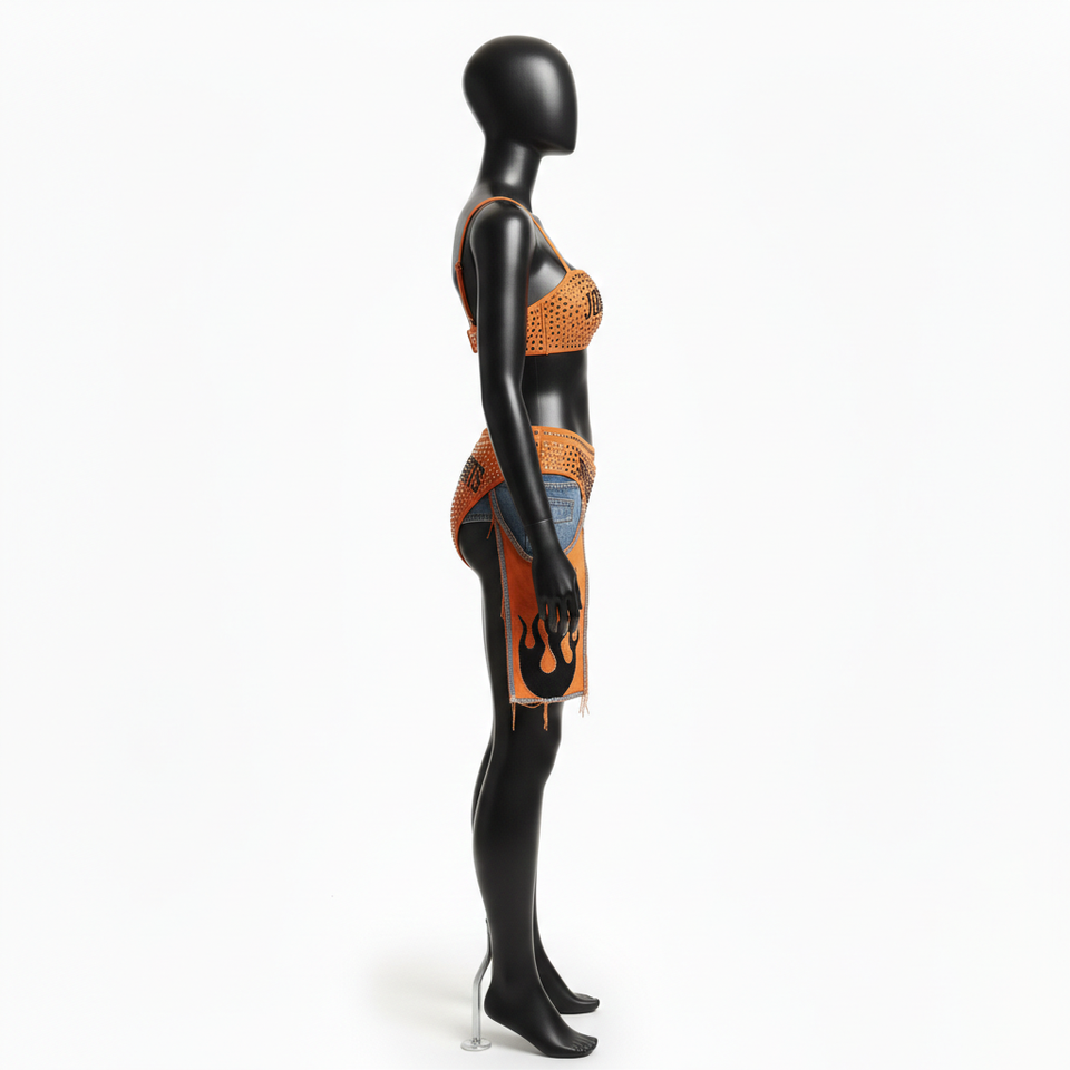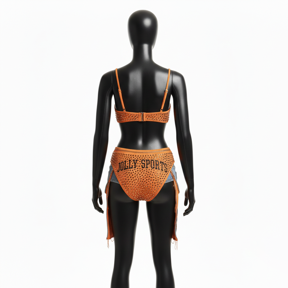 ชุดบิกินี่ผู้หญิง 180 GSM โพลีเอสเตอร์ สแปนเด็กซ์ ยืดได้ สีส้ม ประดับคริสตัลตาข่าย รับสกรีนโลโก้ตามแบบ ชุดบิกินี่ผู้หญิง