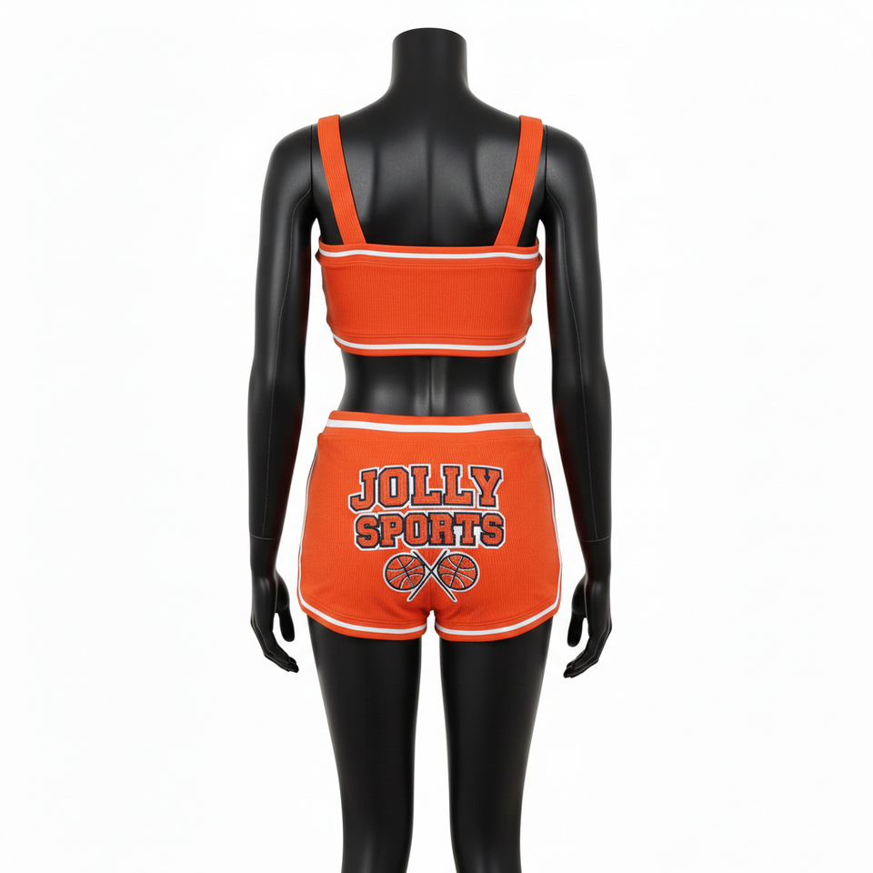 ชุดบิกินี่ผู้หญิง 220 GSM ผ้าริบโพลีเอสเตอร์ผสมสแปนเด็กซ์ สีส้มสด แต่งขอบสีขาว พร้อมสกรีนโลโก้ตามสั่ง