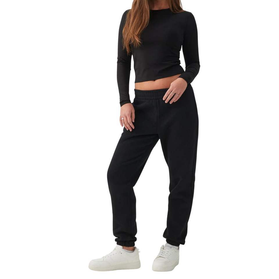 กางเกงวอร์มผ้าฝ้ายสีดำสำหรับผู้หญิง เอวสูง สวมใส่สบาย รับผลิตตามแบบ พร้อมสกรีนโลโก้ ขายส่ง