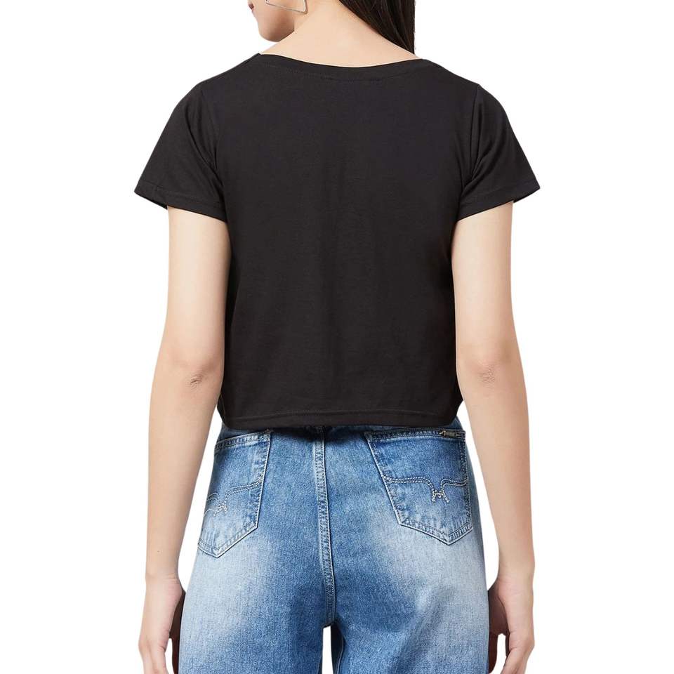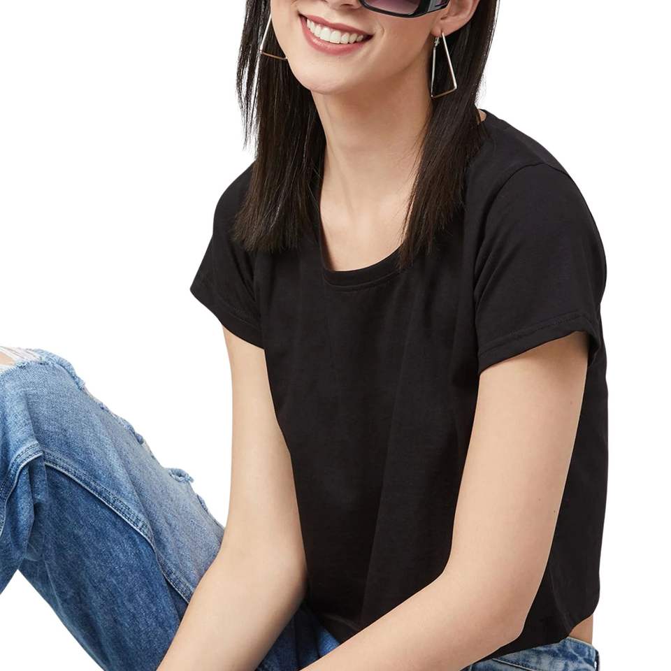 เสื้อครอปท็อปผู้หญิง สีดำ ผ้าฝ้าย แขนสั้น สไตล์ลำลอง ทรงเข้ารูป แฟชั่นฤดูร้อน รับผลิตตามแบบ (OEM) ขายส่ง