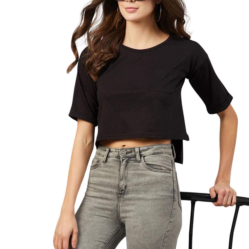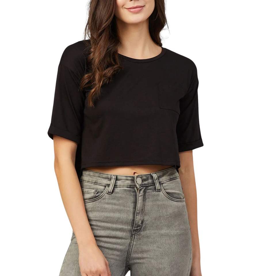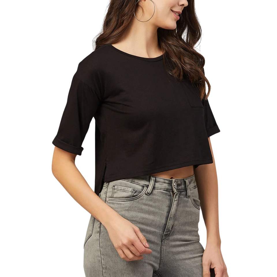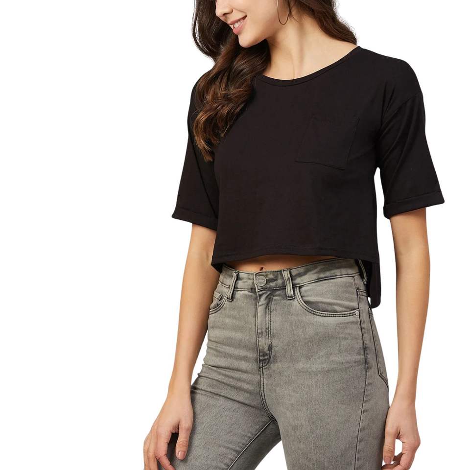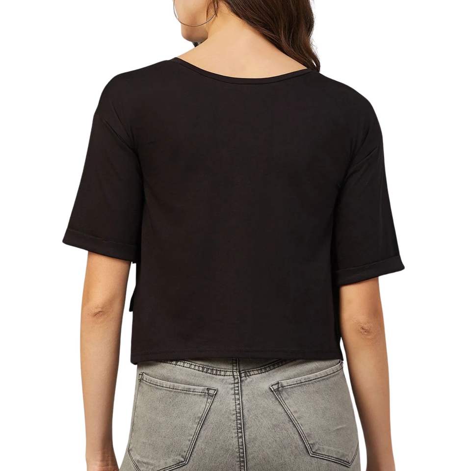 เสื้อยืดครอปแขนสั้นสีดำสำหรับผู้หญิง ผ้าฝ้าย สกรีนโลโก้ได้ สไตล์ลำลอง ใส่ได้ในฤดูร้อน รับผลิตตามแบบ (OEM) ขายส่ง