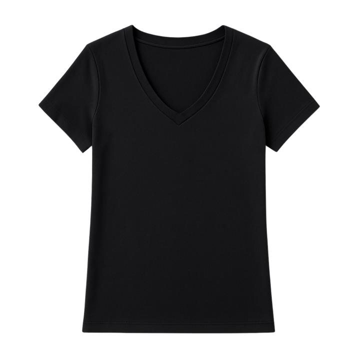 เสื้อยืดผู้หญิงสีดำ คอลึกทรงวี ผ้าฝ้ายออร์แกนิค 100% คุณภาพพรีเมียม ผ่านการรับรอง GOTS ยืดตัวน้อย ระบายอากาศได้ดี ทรงคลาสสิก