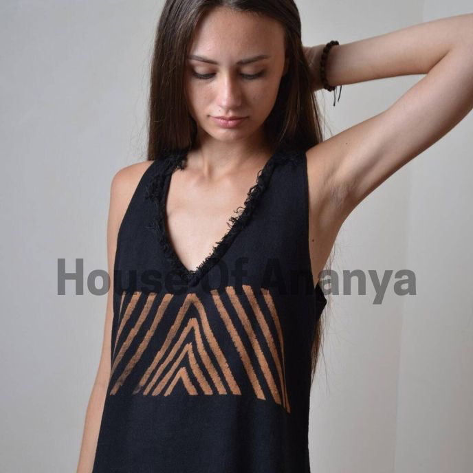 เสื้อผ้าลินินสีดำสำหรับผู้หญิง สไตล์โบฮีเมียน แต่งชายครุย คอวี ลายชนเผ่า ยิปซี ทูนิค เสื้อผ้าฤดูร้อน ราคาขายส่ง เสื้อสไตล์อินเดีย