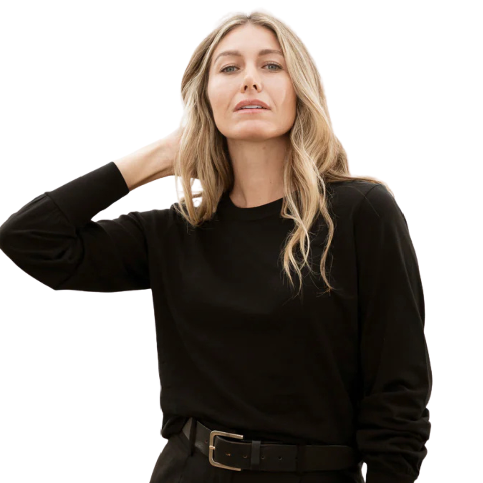เสื้อยืดแขนยาวสีดำสำหรับผู้หญิง ปลายแขนแบบริบ ผ้าฝ้ายออร์แกนิค 100% คุณภาพพรีเมียม ผ่านการรับรอง GOTS ผ้าเนื้อนุ่ม ทรงคลาสสิก