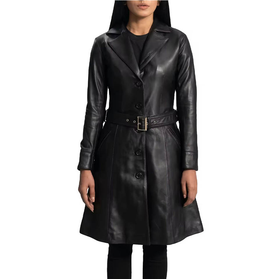 Women Leather Long Coat