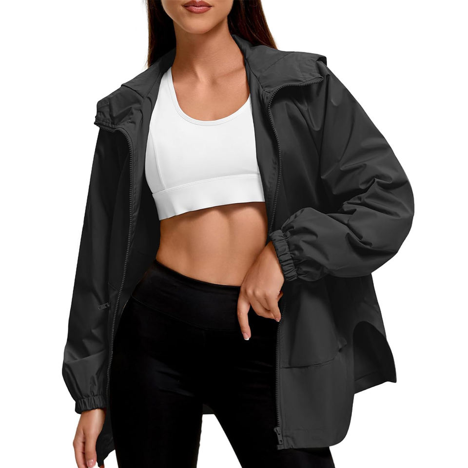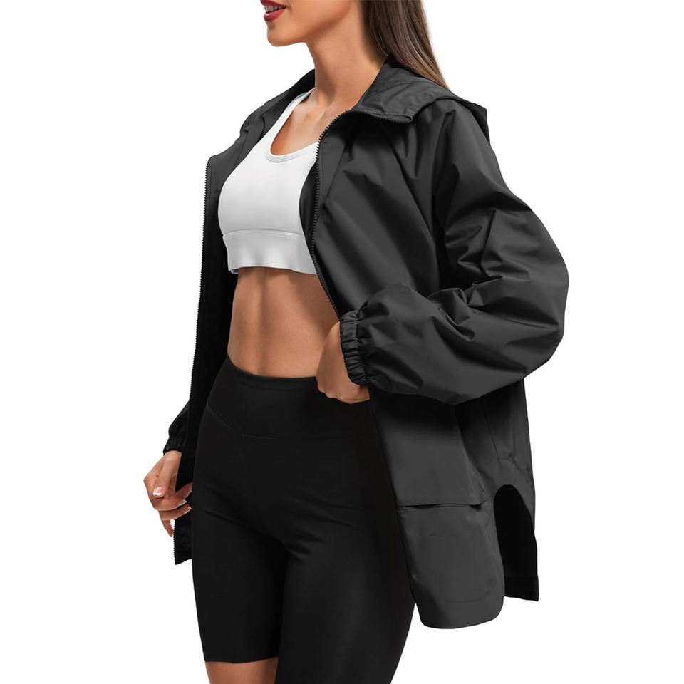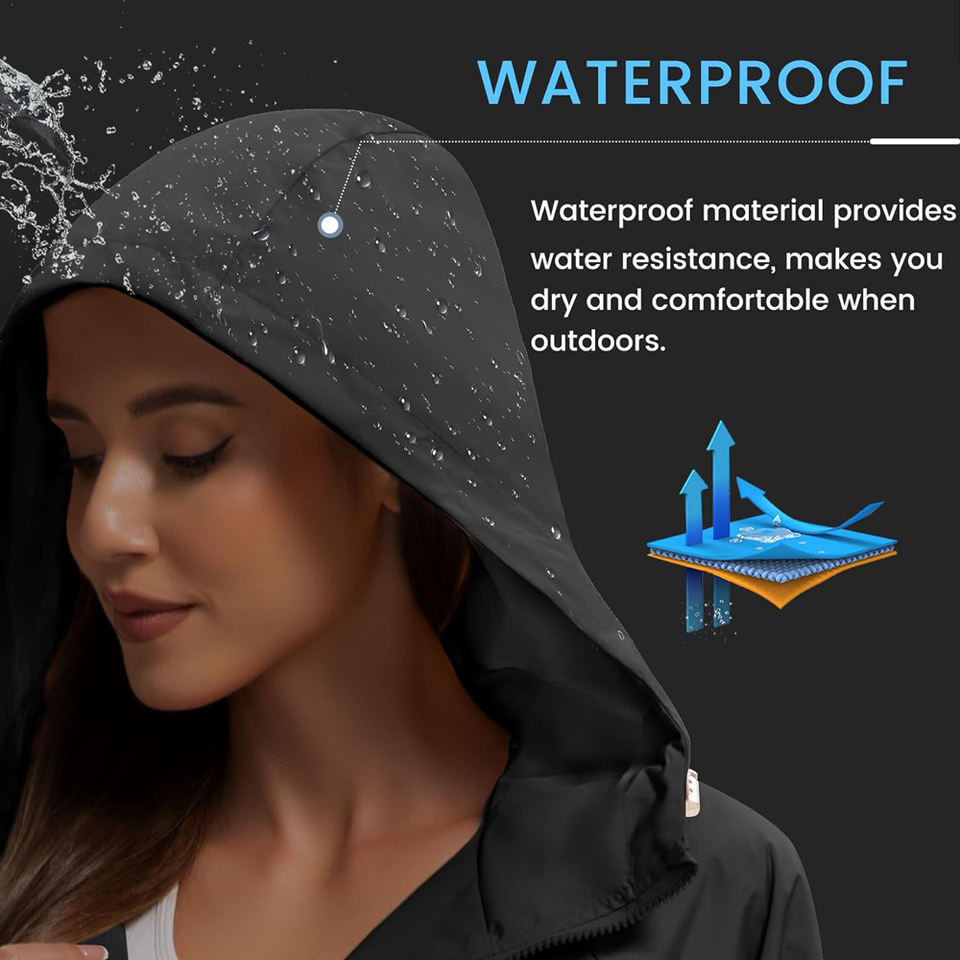 เสื้อแจ็คเก็ตกันลมแบบบางสำหรับผู้หญิง สีดำ กันน้ำ ตกแต่งด้วยผ้าแบบแพทช์เวิร์ค เสื้อกันฝนน้ำหนักเบา เหมาะสำหรับเดินป่า วิ่ง แห้งเร็ว และเดินทาง