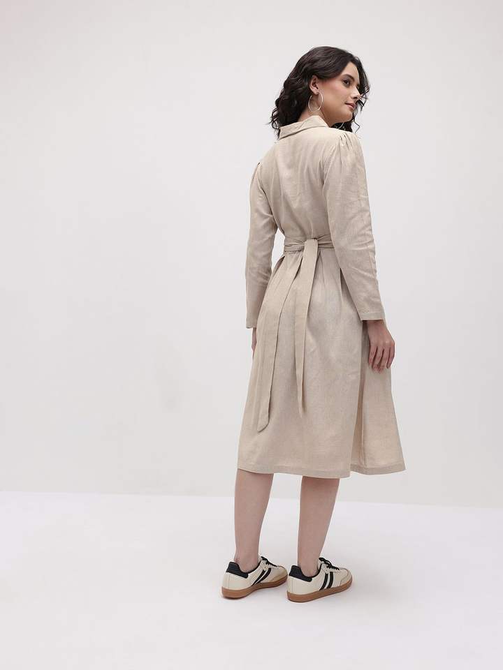 ชุดเดรสคลุมเข่าสไตล์เบลเซอร์สำหรับผู้หญิงผูกคอปกเสื้อเอวแบบพัน