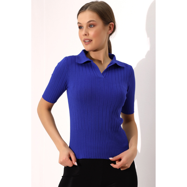 เสื้อถักคอโปโลของผู้หญิงเสื้อเบลาส์แขนสั้นยืดหยุ่นสวมใส่สบายทันสมัยฤดูร้อนปรับแต่งได้