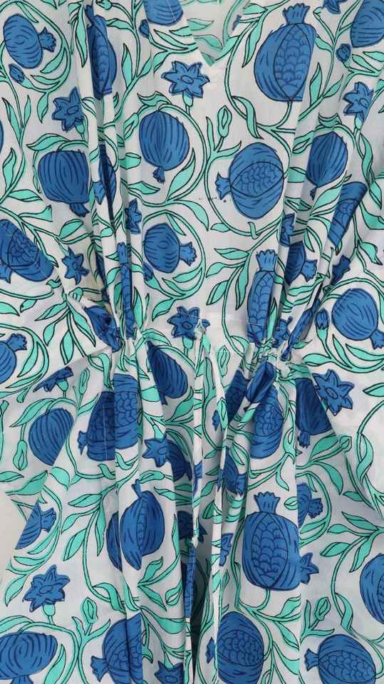 ชุดเดรสผ้าฝ้ายสีน้ำเงินสไตล์โบฮีเมียนสำหรับผู้หญิง เหมาะสำหรับวันหยุดพักผ่อนฤดูร้อน ทรงหลวมสบาย