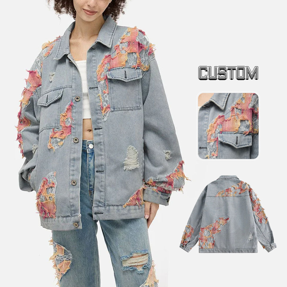 Women Blue Denim Jacket 100% Cotton Eco-Friendly Heated Regular Length Moto Style Outerwear Long Sleeve