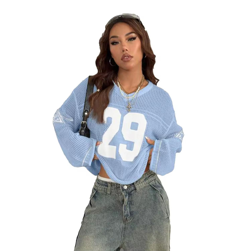คีย์เวิร์ด:เสื้อสเวตเตอร์สตรีท Boxy เสื้อเจอร์ซีย์คอกลม