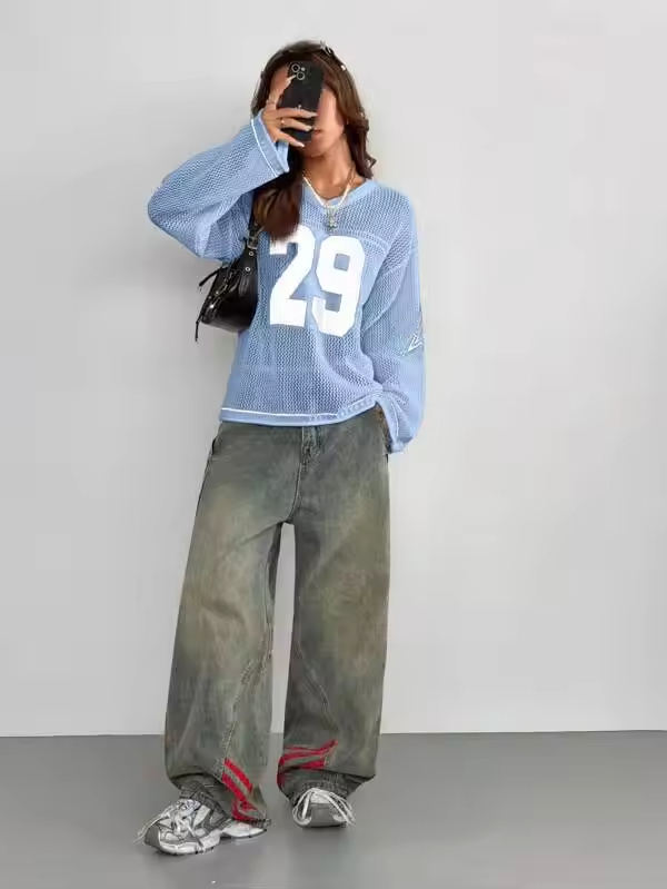 เสื้อสเวตเตอร์สตรีท Boxy เสื้อเจอร์ซีย์คอกลม