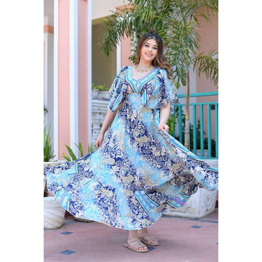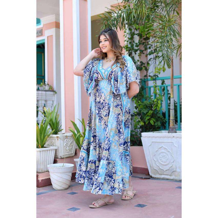 ชุดเดรสยาวพิมพ์ลายสีน้ำเงินสำหรับผู้หญิง สไตล์โบฮีเมียน เหมาะสำหรับใส่ไปเที่ยวทะเล ทรงหลวม สวมใส่สบายในช่วงฤดูร้อน