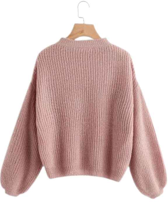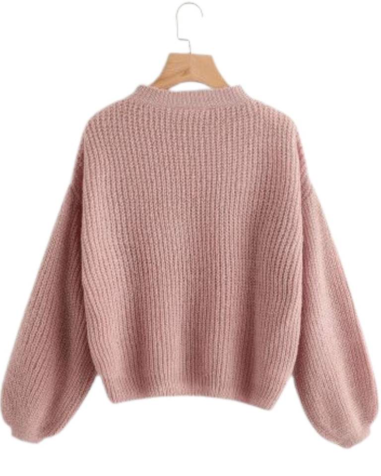 เสื้อสเวตเตอร์ถักลายริบสีชมพูอ่อนสำหรับผู้หญิง เนื้อผ้านุ่ม สวมใส่สบาย ทรงหลวม ไหล่ตก แขนยาว เหมาะสำหรับฤดูหนาว สไตล์ลำลอง แฟชั่นทันสมัย