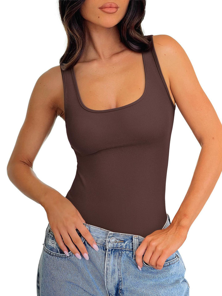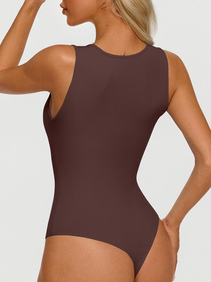 บอดี้สูทผู้หญิง ทรงรัดรูป กระชับสัดส่วน คอวี แขนกุด ช่วยเก็บหน้าท้อง เสื้อทรงเข้ารูป ใส่เที่ยวได้ ชุดฤดูร้อน 2026