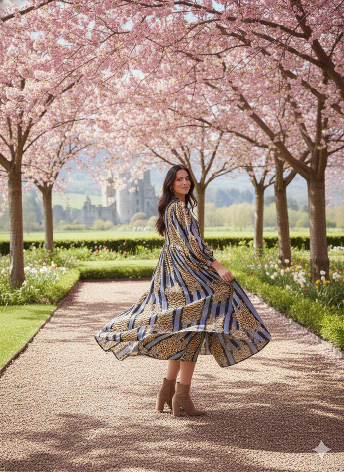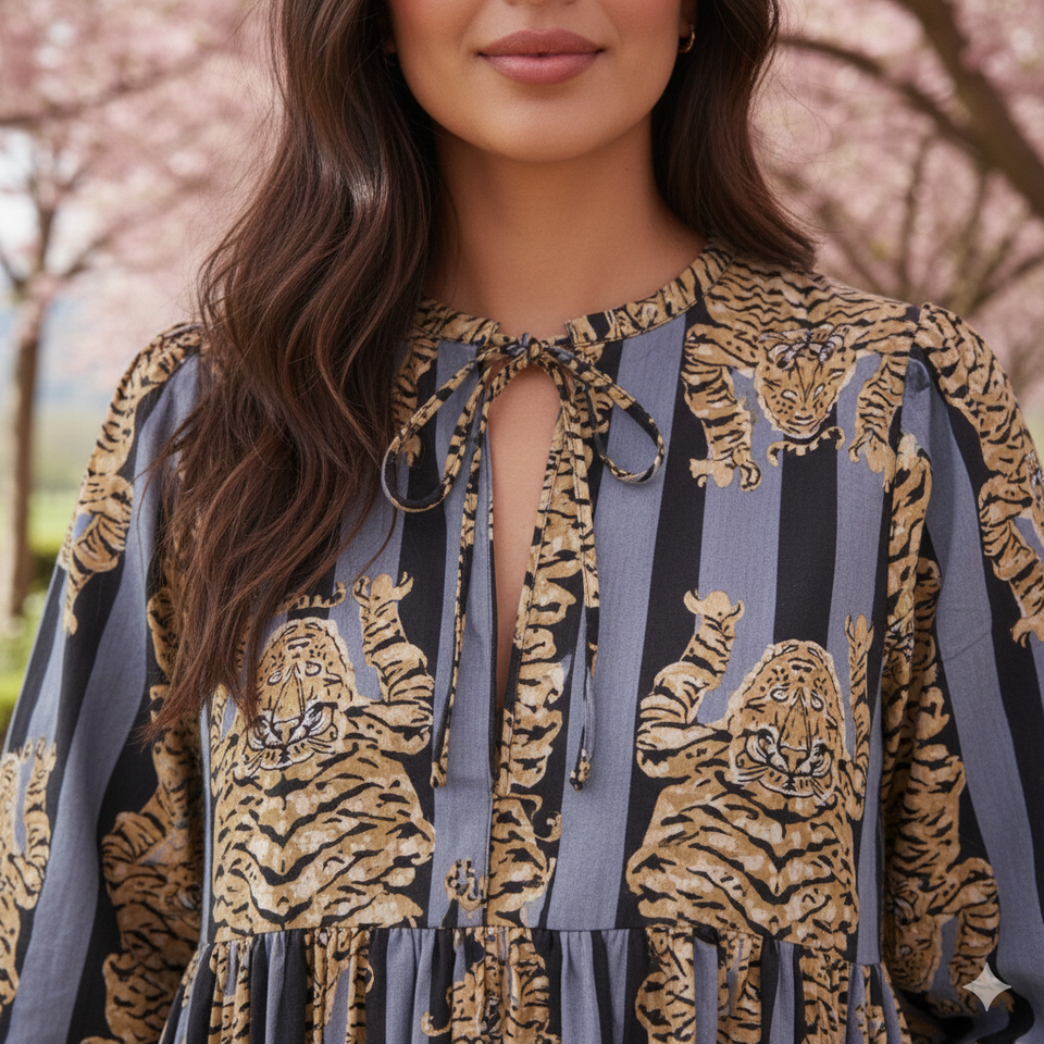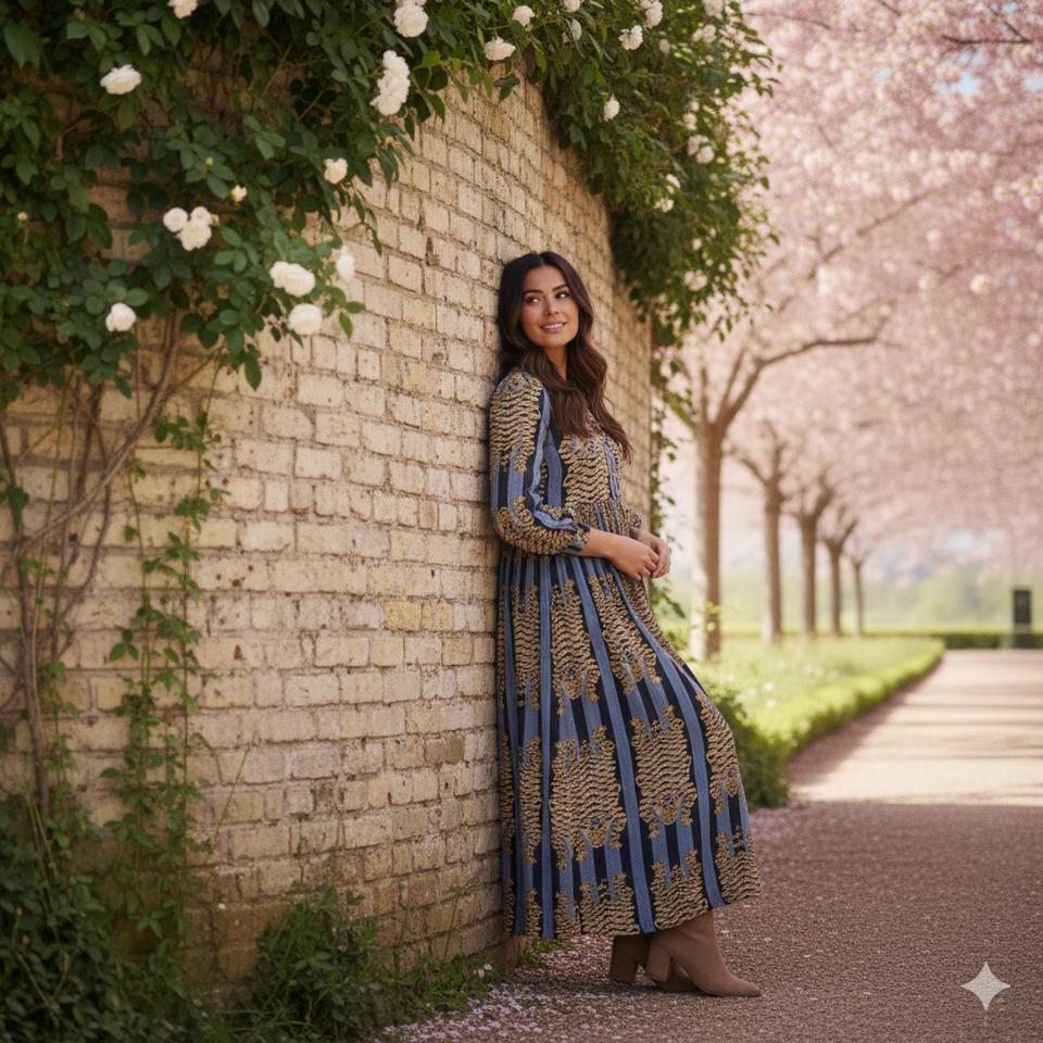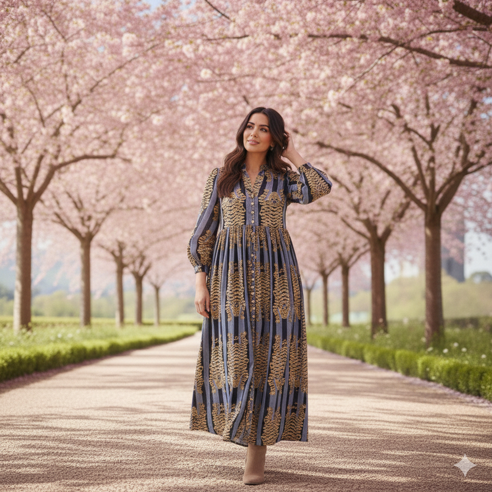 ชุดเดรสยาวสไตล์โบฮีเมียนสำหรับผู้หญิง | เดรสยาวแขนบอลลูนผ้าฝ้าย 100% | เสื้อผ้าลำลองลายพิมพ์ชาติพันธุ์ขายส่ง