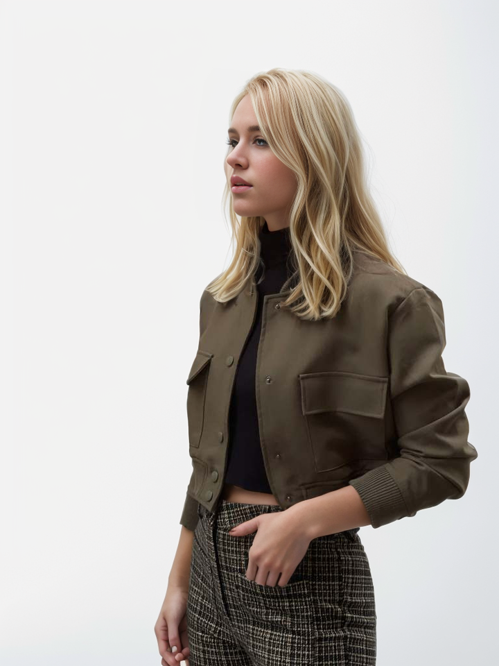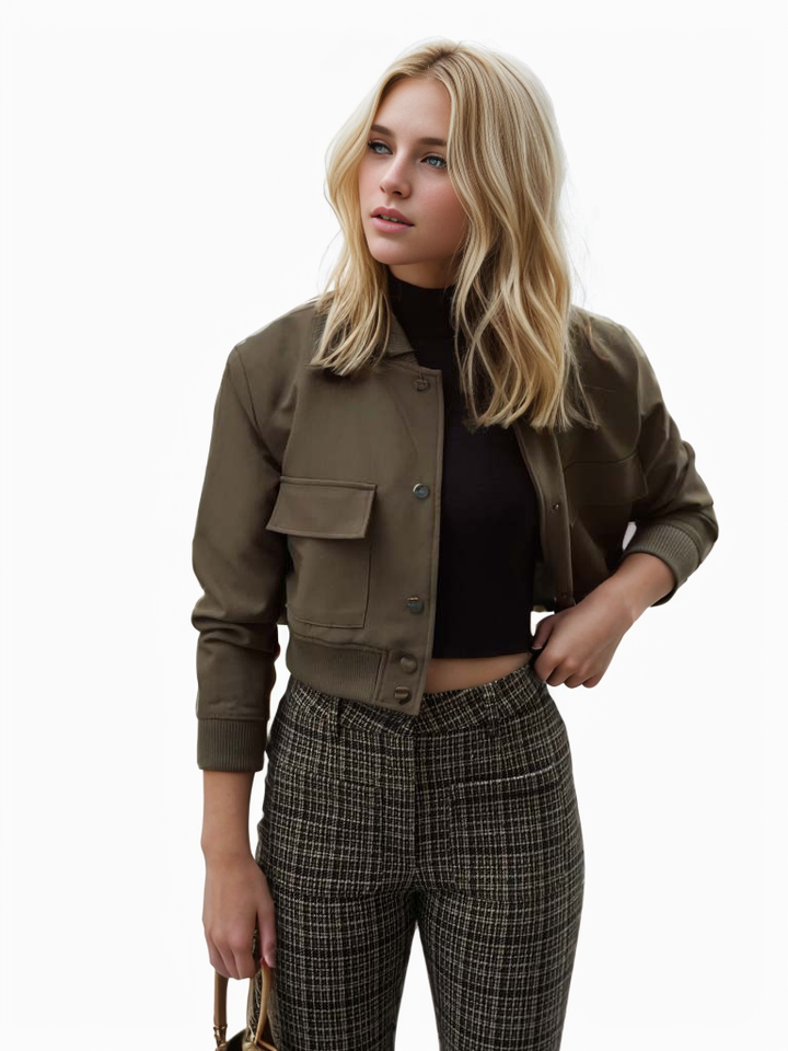 ผู้หญิงเสื้อแจ็คเก็ตแฟชั่นพร้อมกระเป๋าแจ็คเก็ตเสื้อแขนยาวลําลองเก๋ปุ่มหญิงเสื้อแจ็คเก็ต