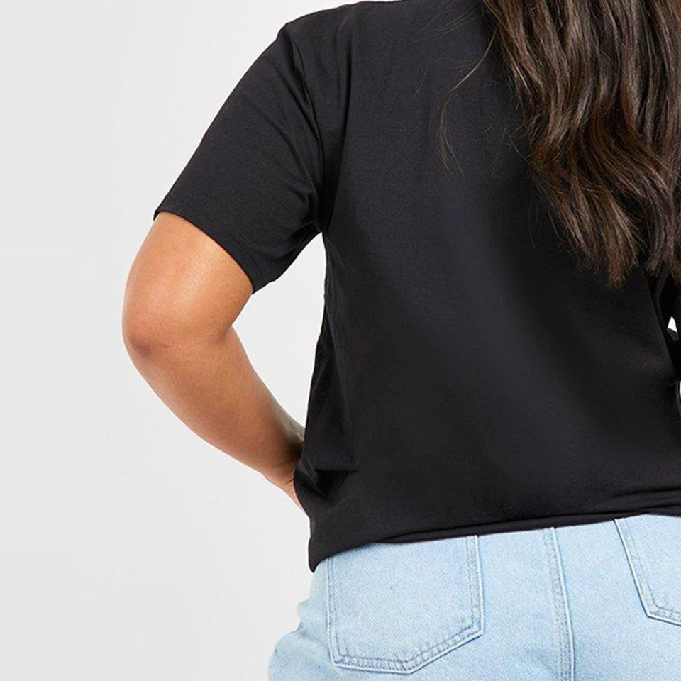 เสื้อยืดผู้หญิงทรงลำลองแบบปกติ ผลิตโดยโรงงาน OEM ผ้าฝ้ายพรีเมียม ตกแต่งหมุดและโลโก้ สไตล์สตรีทแวร์สุดเทรนดี้ สำหรับแบรนด์เสื้อผ้า