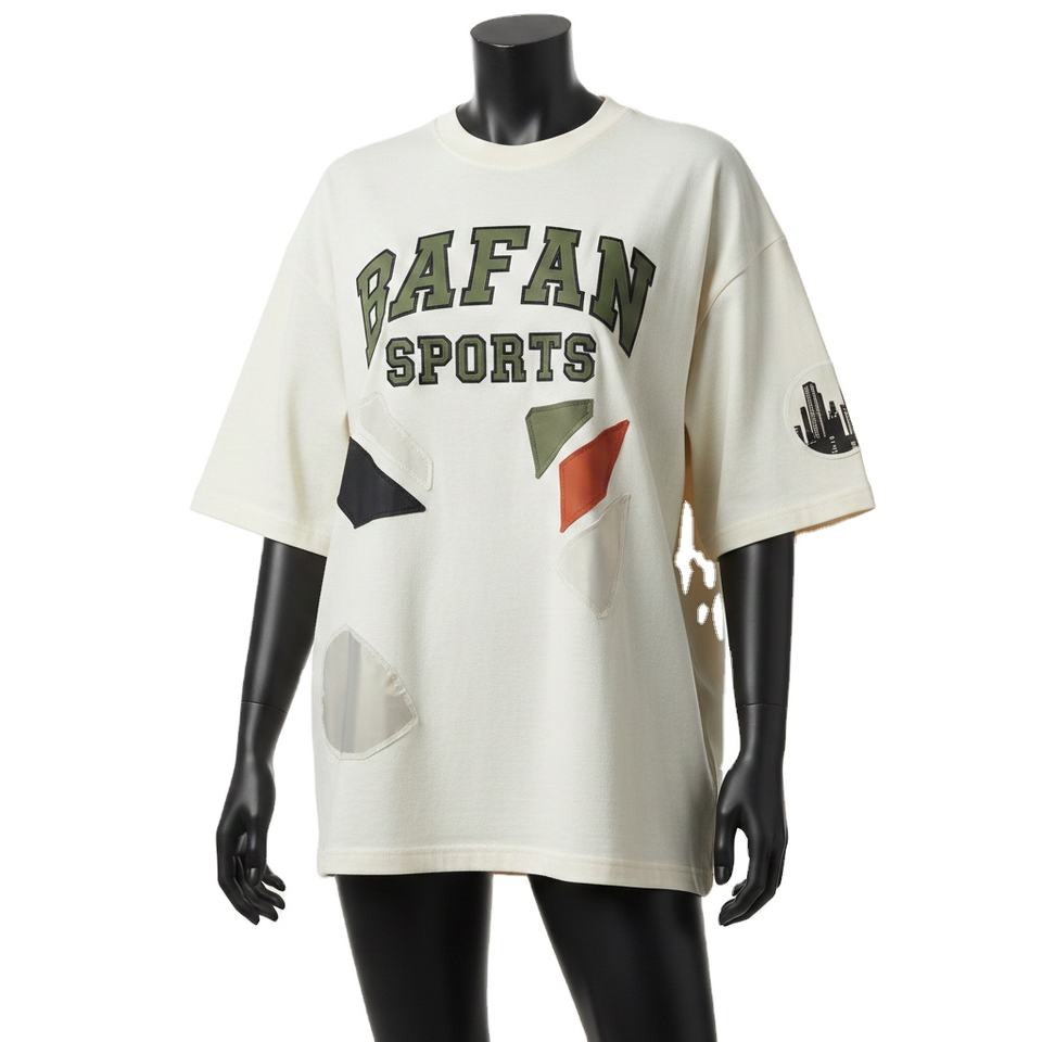 Women Boxy Heavyweight Cotton 250 GSM T Shirt Cream Patchwork Applique Panels Embroidered Custom Logo Women Boxy T Shirts Cotton