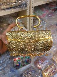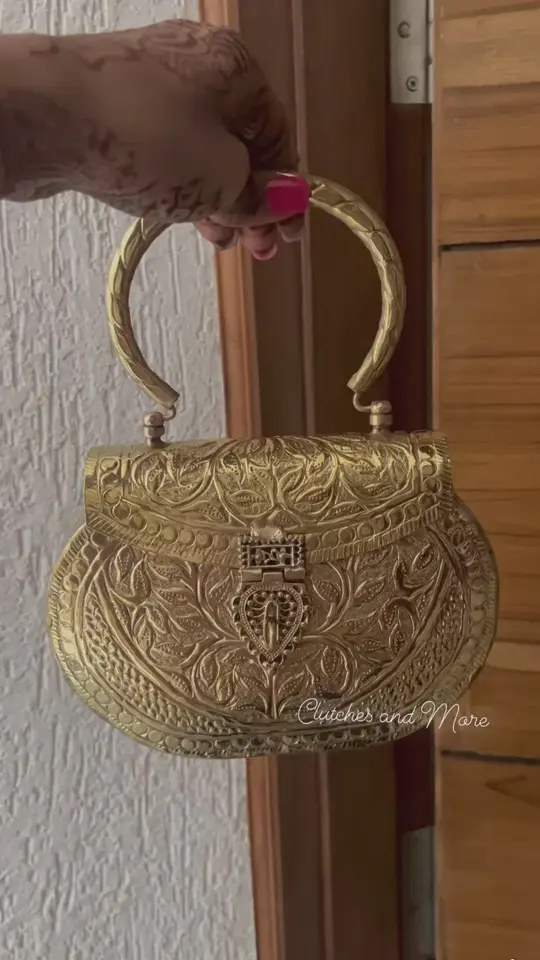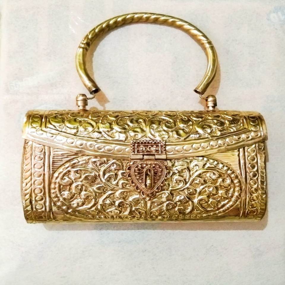 กระเป๋าคลัทช์ทองเหลืองสำหรับผู้หญิง พร้อมรายละเอียดงานฝีมือแบบอินเดียโบราณ กระเป๋าคลัทช์ทองเหลืองสไตล์โบราณพร้อมงานฝีมือแบบดั้งเดิม