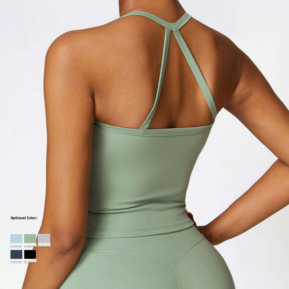 เสื้อกล้ามผ้ายืดแขนกุดสีหวานระบายอากาศได้ดีของผู้หญิงเสื้อผ้าลำลองแบบธรรมดา