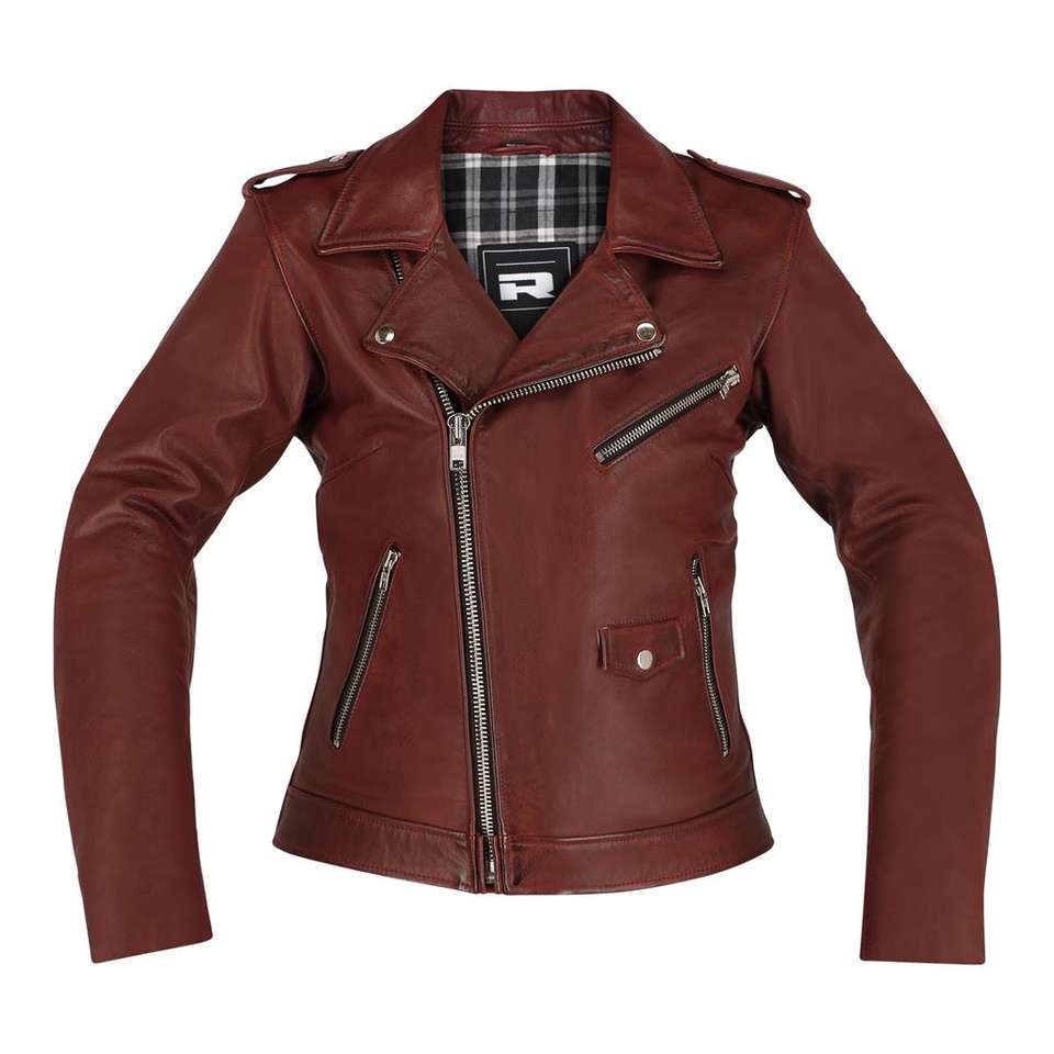 แจ็กเก็ตหนังขี่มอเตอร์ไซค์แบบเจาะรูสำหรับผู้หญิง, แจ็คเก็ตหนังนักแข่งรถหนังวัวไบรตัน/จิงโจ้มีให้เลือกทุกขนาดและหลายสี