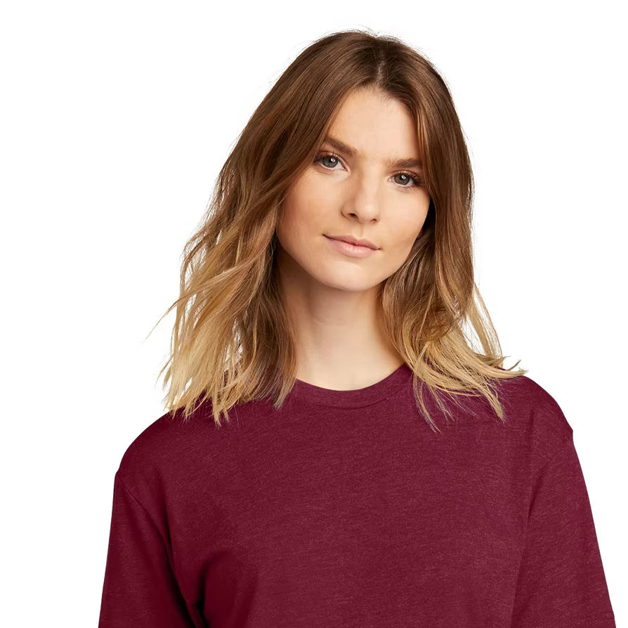 เสื้อยืดคอกลมลายผลไม้สำหรับผู้หญิงเบอร์กันดี