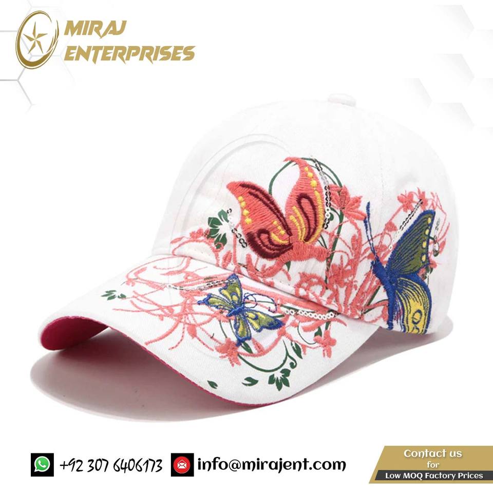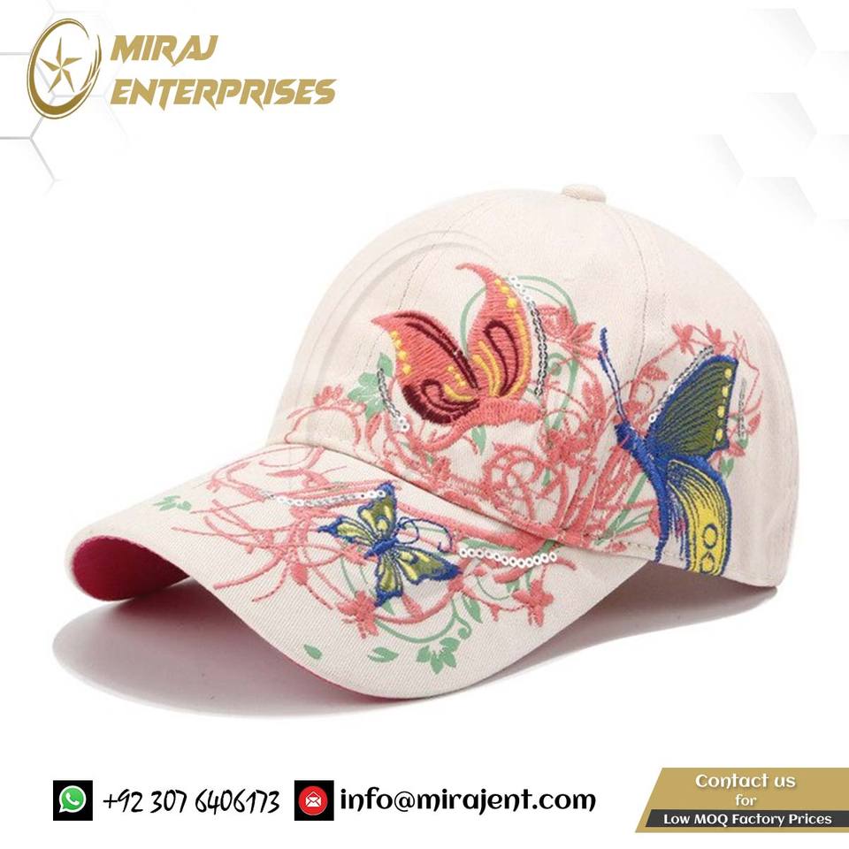 ผู้หญิงผีเสื้อดอกไม้เย็บปักถักร้อยหมวกสาวดวงอาทิตย์หมวกสบายๆ Snapback หมวกเบสบอลหมวกฤดูใบไม้ผลิฤดูใบไม้ร่วง
