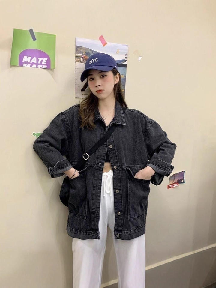 Women Cardigan Jean Jacket Long Sleeve Girls Fashion Long Sleeve Button Pocket Student Denim Coat