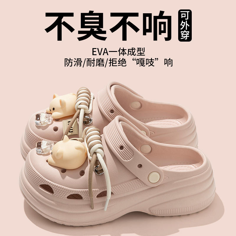 รองเท้าแตะผู้หญิงลายการ์ตูน รุ่น 7176-7 สีเบจ หน้าผ้า PU พื้นรองเท้า EVA ปิดนิ้วเท้า สไตล์ฤดูร้อน เหมาะสำหรับเดินทางและพักผ่อน